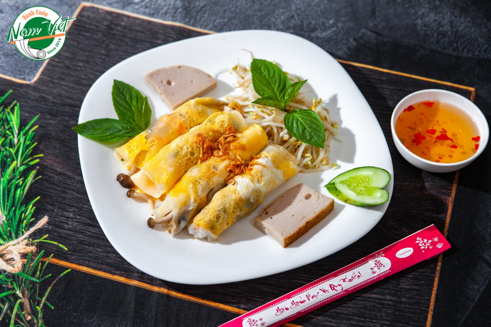 Bánh Cuốn Trứng: Bánh cuốn tráng mỏng, nhân trứng gà lòng đào, chấm nước xương hầm. Ăn sáng tại Phố cổ.