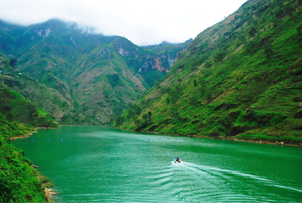 Kayaking Nho Que River: From the Ma Pi Leng Pass, the group will descend to the boat dock to experience a boat ride on the emerald-green Nho Que River, admiring the sheer cliffs from the bottom of the canyon.